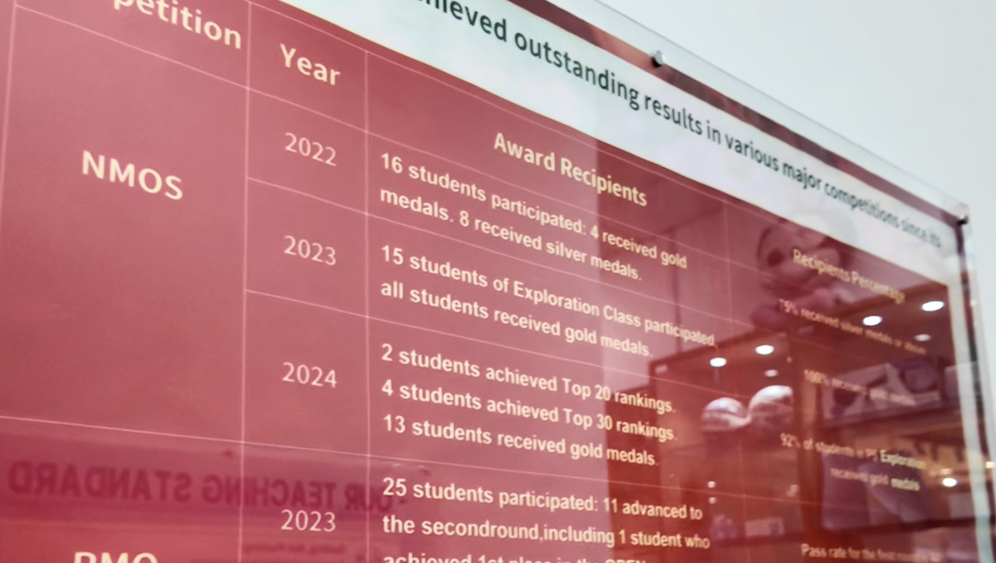Multiple students have won Gold in the Yingchun Cup (equivalent to RMO). In 2023, one of his students scored 21 in AMC8, ranking in the top 1% globally. 75% of his students advanced to GEP Round 2, and 25% were successfully selected for GEP classes. In the 2024 SASMO competition, 87.5% of his students received medals, with 25% winning Gold; 80% advanced to GEP Round 2, and 30% were successfully admitted to GEP classes.