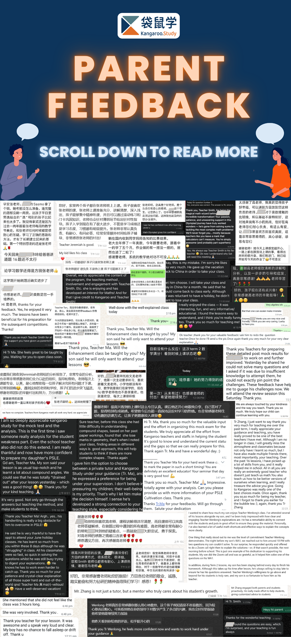 Head of the P6 PSLE Department at Kangaroo Study, Teacher Ma is the architect behind the current P5 and P6 PSLE syllabus and teaching materials. Recognized as the fastest-growing teacher in the organization, he combines academic excellence with a passion for nurturing student success.